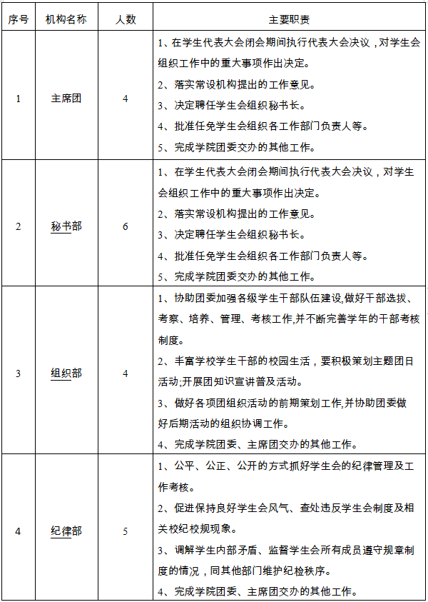 学生会工作机构组织架构表