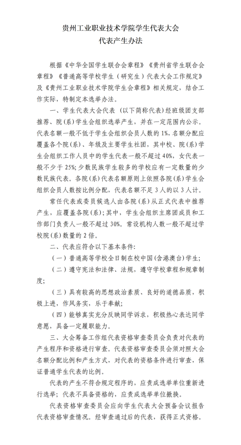 学生代表大会代表产生办法