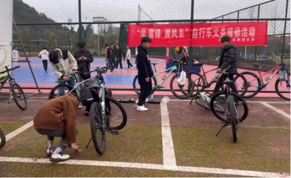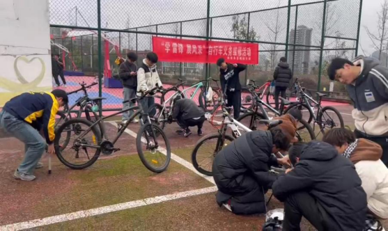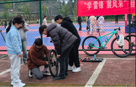 学雷锋展风采,来自体育系直属团支部主办、自行车俱乐部协办的自行车义务维修活动在生活区篮球场举行。本次义务修车活动是践行学雷锋精神的一次生动实践,展现了同学们乐于奉献、团结协作的优良品质和新时代青年学子的责任担当。