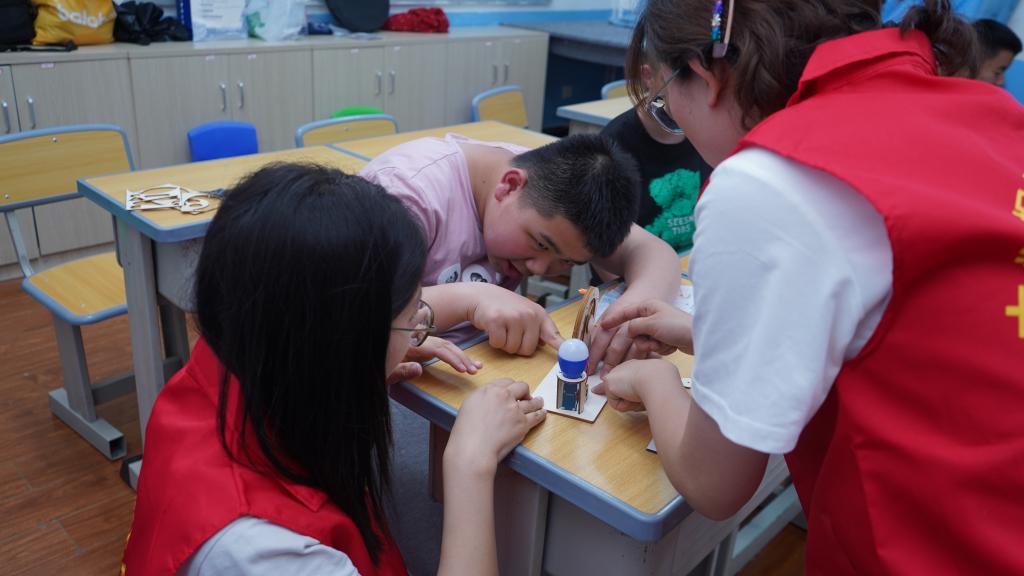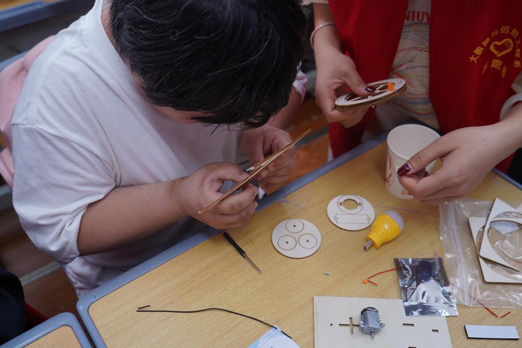为了开展科普教育,满足儿童探索的好奇心,志愿服务实践团队来到清镇市特殊教育培智六年级,以“电能的诞生与旅行”为主线,通过“感知-解构-创造”的三阶教学法,开展了手摇发电机拼装志愿服务活动。以讲授手摇发电机工作原理及拼装过程为载体,开启科技启蒙教育,提高了特殊儿童对现代科技的认识和理解,培养了他们对科学知识和技能的兴趣和探索精神,引导特殊儿童在动手实践中触摸科技脉搏。
