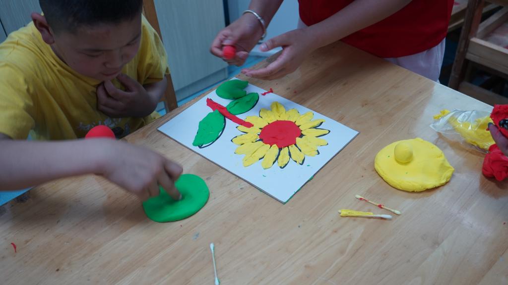 为了传递正能量,打开特殊儿童心扉,志愿服务实践团队来到清镇市特殊教育培智一年级,以“阳光与希望”为主题,开启了一场“自然认知-艺术转化-心灵对话”三重疗愈的粘土制作向日葵艺术实践。以介绍向日葵外形特征与精神品质为引子,通过创造粘土向日葵,引导特殊儿童通过手工创作表达情感,感受大自然神奇的力量,以艺术疗愈赋能成长,用爱与美育点亮他们的特殊心灵。