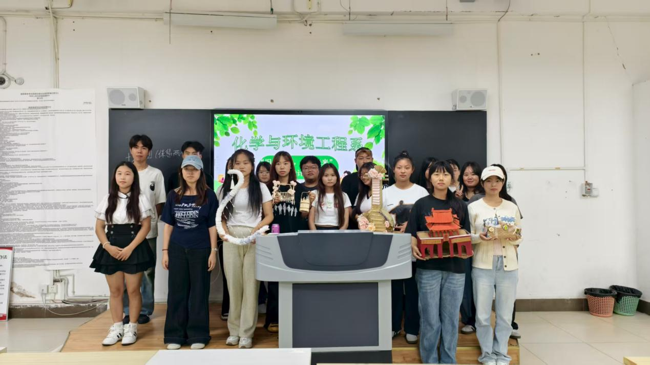 为迎接新生加入校园大家庭,丰富校园文化氛围,响应绿色低碳的校园建设理念,化学与环境工程系于2025年9月22日在悦知楼101教室成功举办“旧物焕新,创见未来”变废为宝设计大赛。