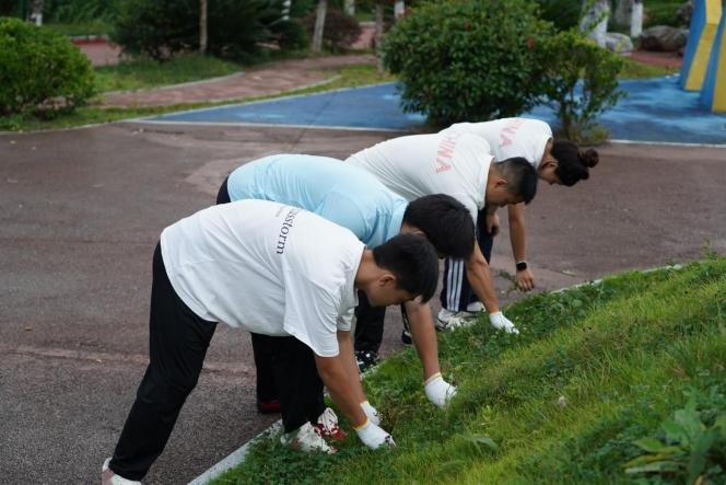 劳动过程中,同学们充分展现体育学子的活力与担当,手持垃圾袋的同学细致捡拾路面及草丛中的塑料瓶、果皮纸屑等,不放过任何卫生死角。携带除草工具的同学两两协作,弯腰清理步道两侧的杂草,确保骑行路径整洁通畅。大家相互配合、干劲十足,汗水浸透衣衫却始终保持热情,用实际行动为公园环境“焕新”。