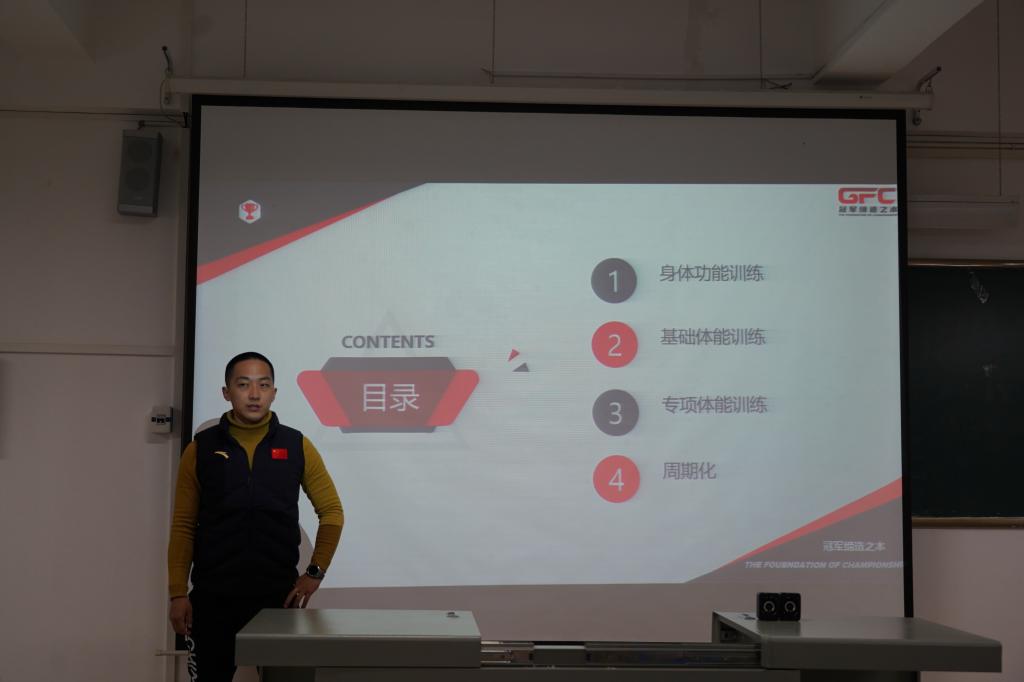 为培养全院师生的体育技能,促进我院自行车运动健康发展。体育教学部于11月15日晚19:00在我院清镇校区悦知楼L006教室特邀贵州省山地自行车队总教练陆正虎、体能教练王安冉为我院17名教师进行自行车教练员培训。