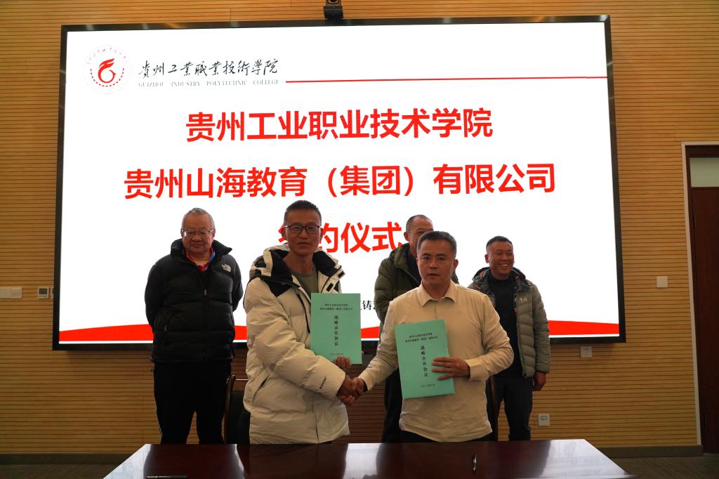 贵州山海教育(集团) 有限公司董事长蔡庆斌对山海教育公司内设情况进行了简要概述。他表示:将秉承着"优势互补,服务学生"的原则,建立长期、紧密的合作关系,为校方培养更多高素质、高技能、专业的应用型人才,同时也为学生教学、实习、实训、就业提供更大空间。