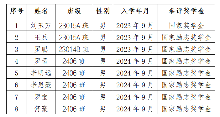 根据《星空web版登录入口国家奖学金评定办法》《星空web版登录入口国家励志奖学金评定办法》及学生资助中心名额划分,我系2024-2025年度国家奖学金名额1人,国家励志奖学金7人。通过系部奖学金评定小组依据学生家庭经济情况、学习成绩、综合素质、思想德育给予评定,拟推荐以下8名同学参评,名单如下: