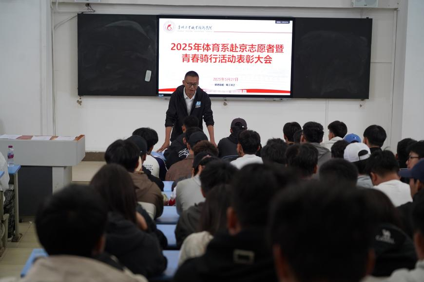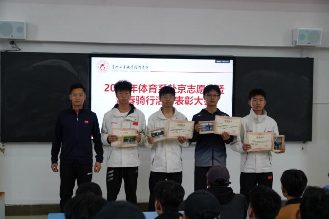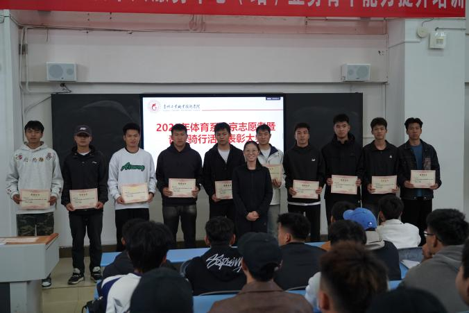 为表彰在体育系学生赴京志愿服务工作及在青春骑行活动中表现突出的师生,树立先进典型,进一步激发全体师生的工作热情、参与度和积极性。5月27日,体育系在求知楼阶梯教室举办了“体育系赴京志愿者暨青春骑行活动表彰会”。本次表彰会由体育系副主任邹昆主持,体育系全体师生齐聚一堂,共同见证这一荣耀时刻。