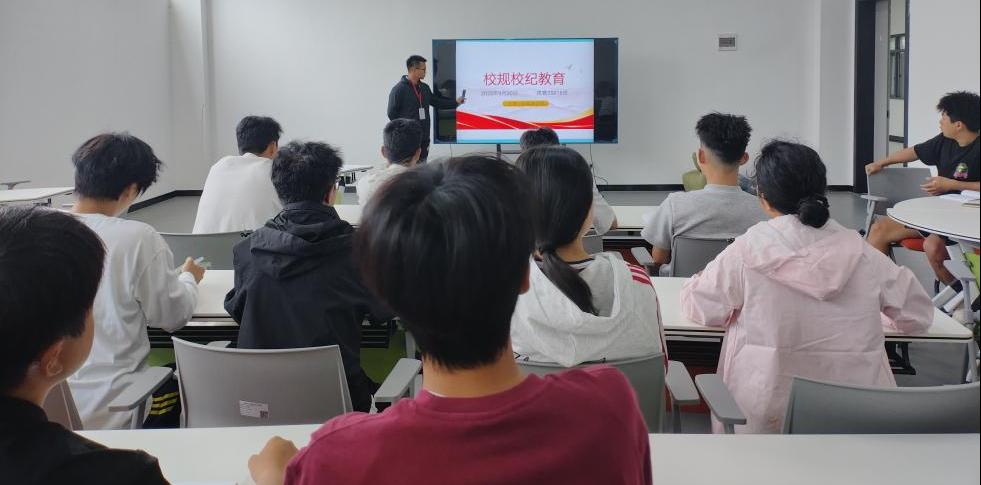 当天下午,办公室主任宋金超为新生带来“校史校情教育”,他生动讲述了的发展历程、办学特色和校训精神,增强了同学们对的认同感与归属感。随后,彭淑清老师围绕“校规校纪教育”展开讲解,强调法治意识与行为规范,为新生的大学生活奠定纪律基础。