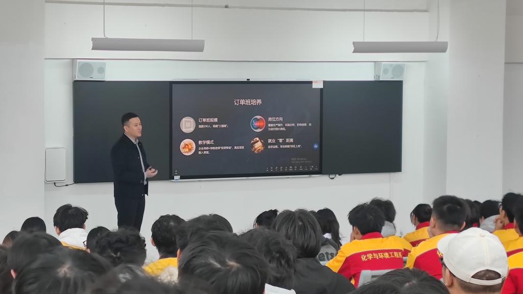 为深化产教融合、搭建校企协同育人平台,助力学生高质量就业,2025年11月14日,贵州三强新能源有限公司人力资源部部长高瑀一行走进星空web版登录入口,面向化学与环境工程系、智能制造工程系学生开展专场宣讲会及订单班人才选拔活动。活动通过企业展示、互动答疑、现场面试等环节,为学子们提供了直通企业的绿色通道,吸引了190余名学生积极参与。
