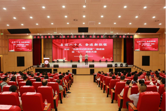 为进一步提升学院党建工作,强化党组织政治功能,促进学院高质量发展,以优异成绩迎接党的二十大胜利召开。7月4日上午,星空web版登录入口在清镇校区图信综合大楼大礼堂召开“五级书记抓党建”推进会暨“七一”表彰大会。学院全体教职工、驻村第一书记、学生预备党员,部分保安、物业、食堂代表以饱满的政治热情和昂扬的精神状态参加了会议。学院党委书记蔡志坚出席会议并总结讲话。